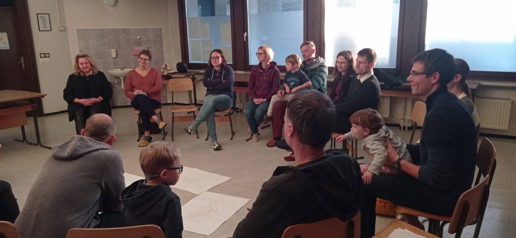 V župniji sv. Križ na Žalah je 9. oktobra potekalo prvo izmed treh srečanj z družinami, ki sodelujejo v programu družinske kateheze. Srečanje je bilo razdeljeno na dve skupini starše in otroke. V obeh skupinah smo se pogovarjali o spolnosti in o pomenu celostne spolne vzgoje. Starši so na delavnici razmišljali, kako lahko otrokom v različnih razvojnih obdobjih pomagajo oblikovati zdrav odnos do svojega telesa in do drugih. Pri otrocih pa smo svet spolnosti spoznavali tudi s pomočjo likov iz našega stripa Pri nas doma, bilo je zanimivo in živahno.